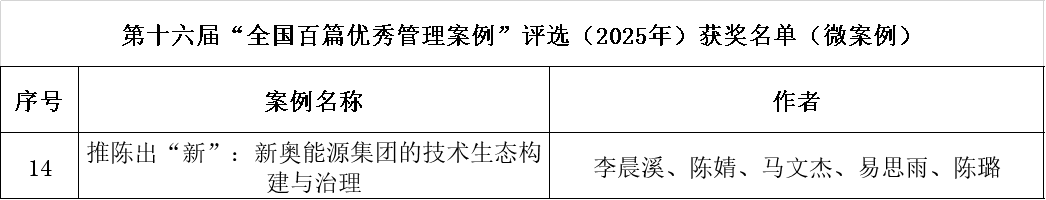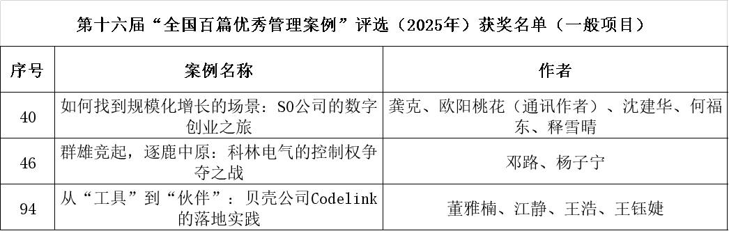 在全国工商管理专业学位研究生教育指导委员会的指导下,中国管理案例共享中心主办的第十六届“全国百篇优秀管理案例”评选工作结束,于9月10日公布获奖名单。经过同行匿名函审和专家委员会会议评审两轮评审,从195所院校的1812篇(其中重点项目13项49篇、一般项目1207篇、微案例专项328篇、国有企业管理专项228篇)投稿中评选出231篇获奖案例。其中:8项重点项目的29篇案例入选第十六届“全国百篇优秀管理案例”(重点案例),136篇案例入选第十六届“全国百篇优秀管理案例”(一般项目),35篇案例入选第十六届“全国百篇优秀管理案例”(微案例),31篇案例入选第十六届“全国百篇优秀管理案例”(国有企业管理专项)。