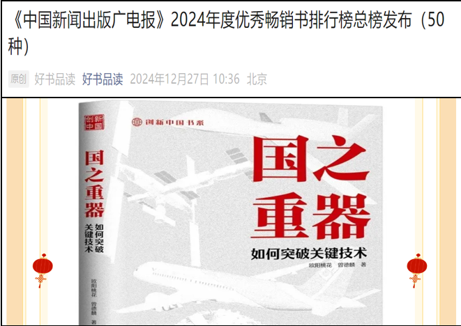 近日,经济管理学院欧阳桃花团队所著《国之重器:如何突破关键技术》接连斩获两项出版领域重要荣誉:入选《中国新闻出版广电报》2024 年度优秀畅销书排行榜总榜(TOP50),并荣登《中国出版》2025 年 “阅读新时代” 荐读书目(TOP100)。本书由欧阳桃花教...